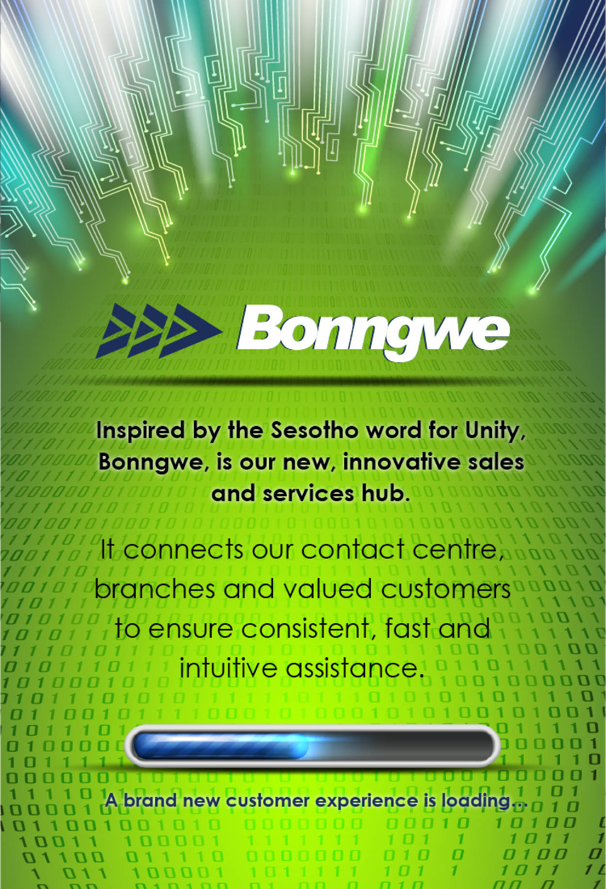 For those wondering, Bonngwe is inspired by the Sesotho word for unity, describing the “unified view of the customer” being driven through the initiative - bringing together everything we need to enhance customer experience and keep us competitive in the banking world.